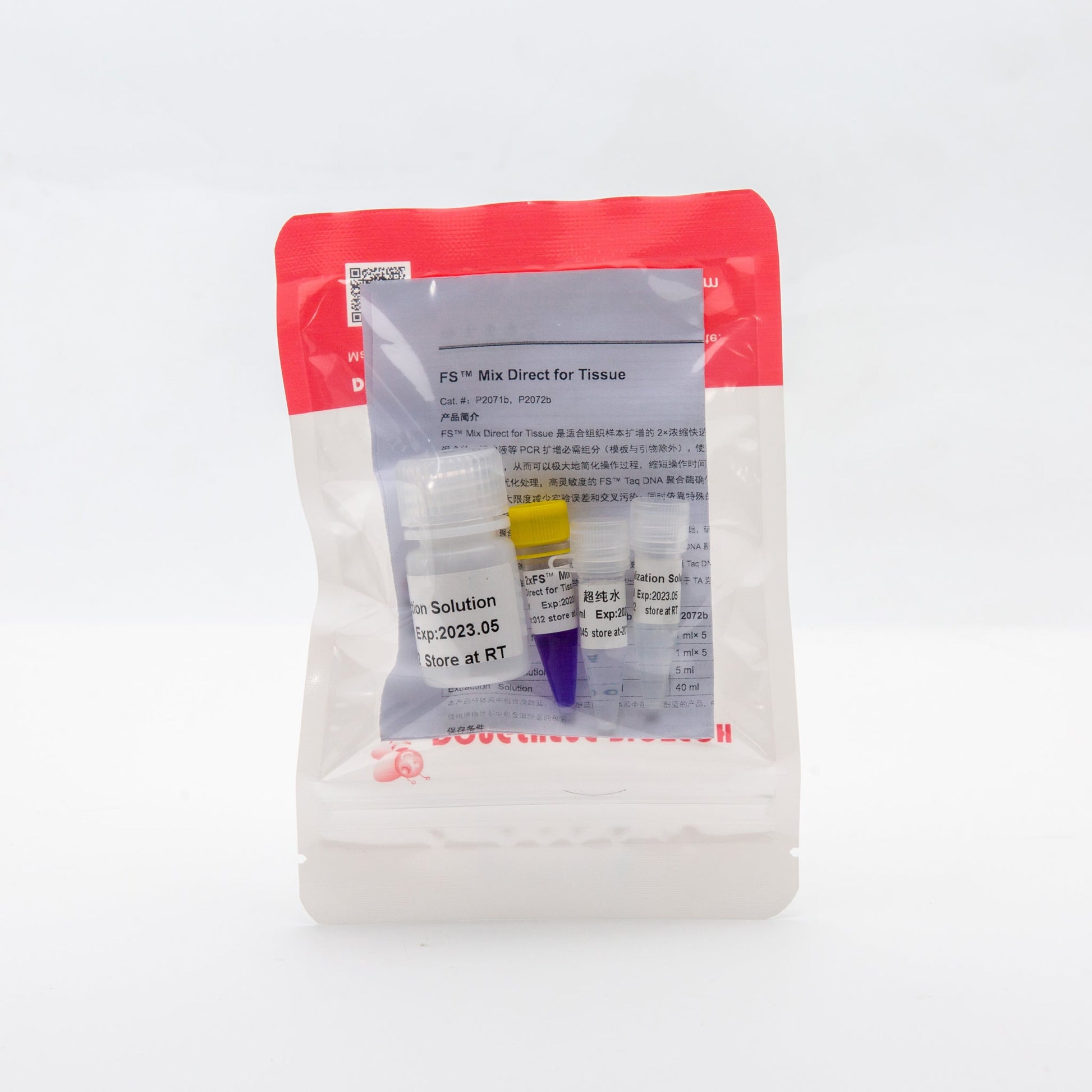 2X FS Taq Mix Directo para Tejido (FS Mix T) es una solución premezclada y lista para usar que contiene ADN polimerasa FS Taq de inicio rápido con modificación de anticuerpos, dNTP, Mg₂+ y tampón de reacción en concentraciones óptimas para la amplificación eficiente de moldes de ADN mediante PCR. FS Mix T es específico para la amplificación directa de tejido. Contribuye a una PCR rápida, específica, sensible y reproducible, reduciendo el riesgo de errores de pipeteo, cálculos erróneos y contaminación. FS Mix T se puede utilizar con equipos de PCR convencionales. Este producto simplifica el proceso de extracción de ADN, que es complejo y requiere mucho tiempo, y minimiza la contaminación cruzada en la reacción.