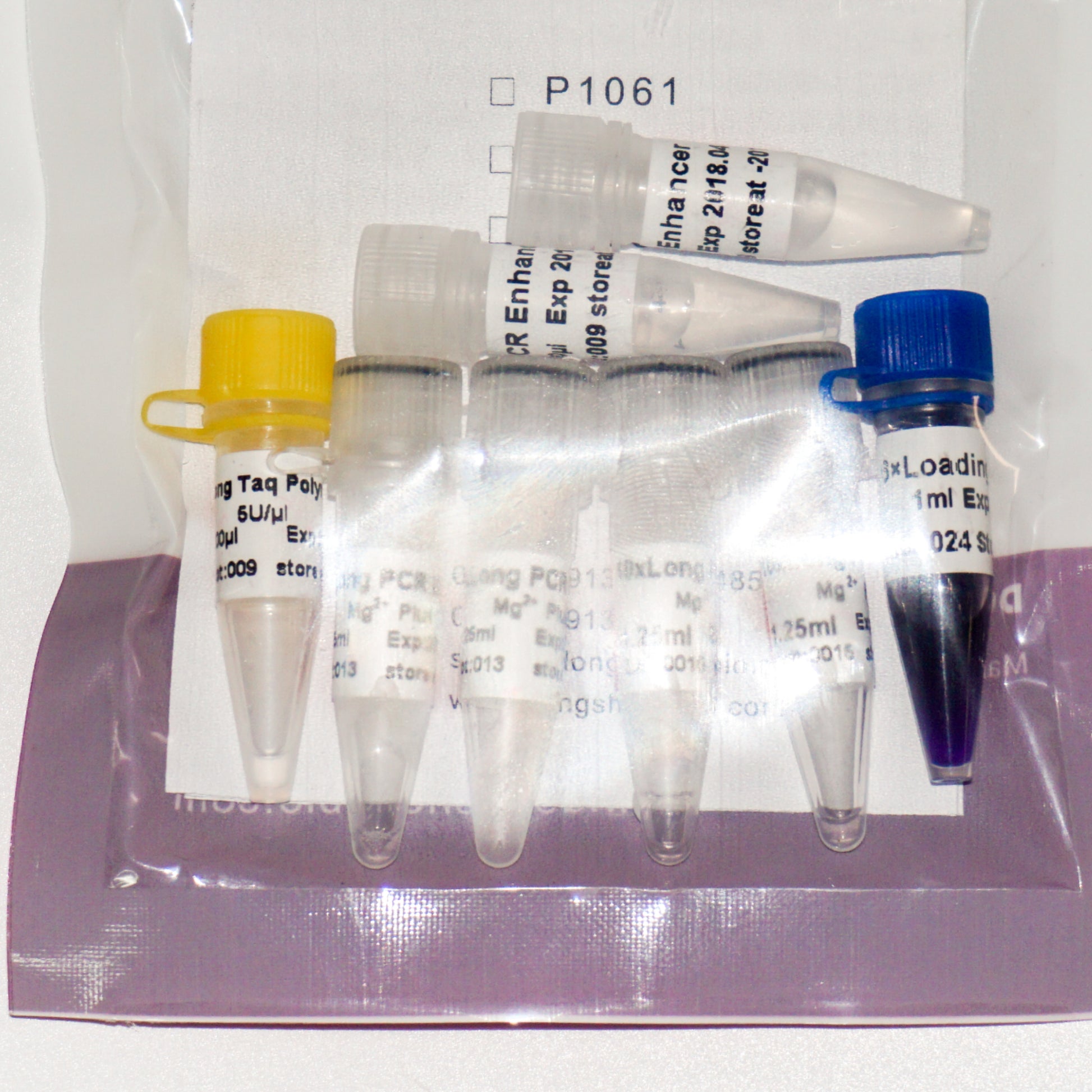 Long Taq DNA Polymerase is suitable as a replacement for ordinary Taq Polymerase in most applications. The elongation rate is 3kb/min. The products of Long Taq DNA Polymerase is a mix of 3′-dA overhangs and blunt-ends products, which can be used in TA clone.