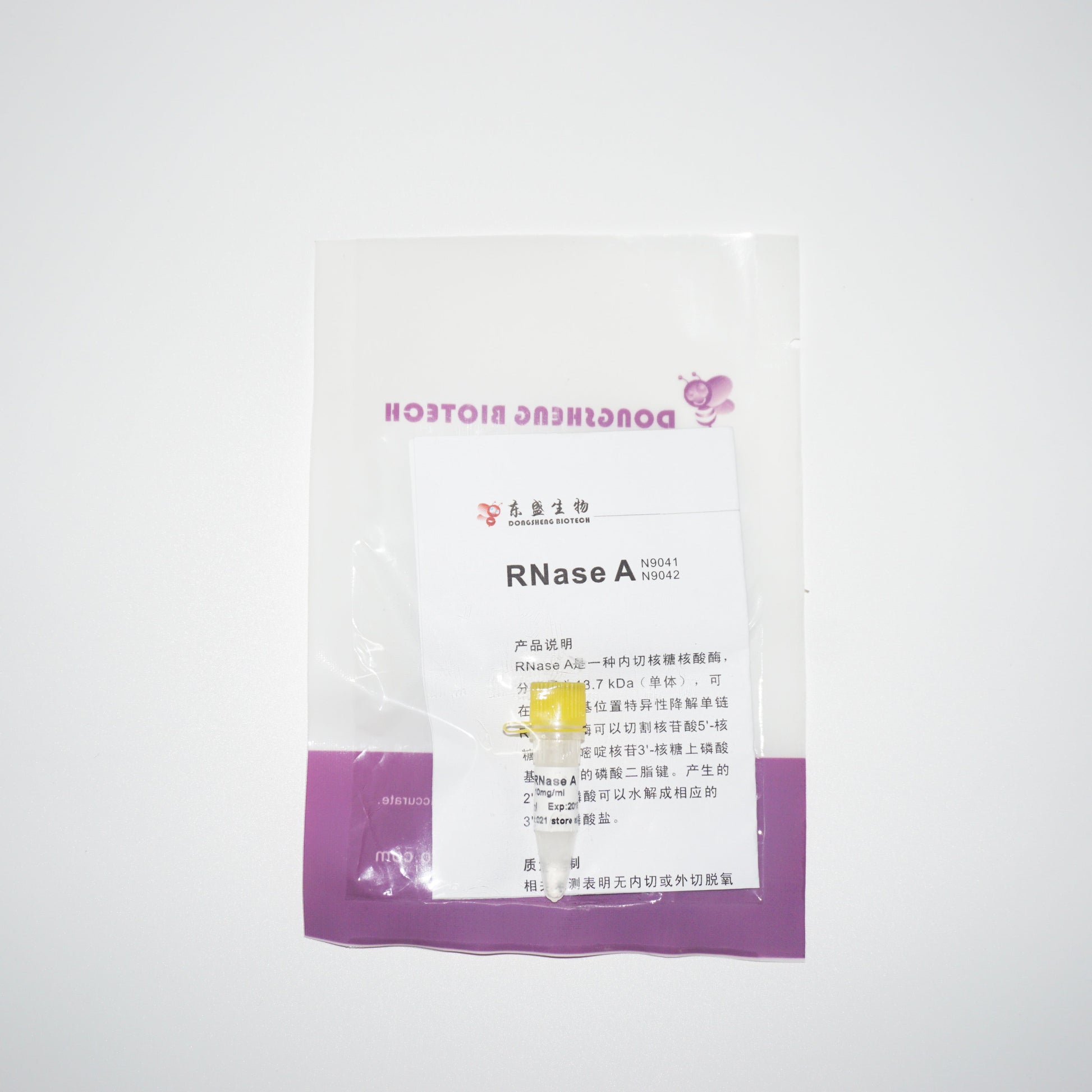 The RNase A is an endoribonuclease that specifically degrades single-stranded RNA at C and U residues. It cleaves the phosphodiester bond between the 5'-ribose of a nucleotide and the phosphate group attached to the 3'-ribose of an adjacent pyrimidine nucleotide. The resulting 2', 3'-cyclic phosphate is hydrolyzed to the corresponding 3'-nucleoside phosphate.