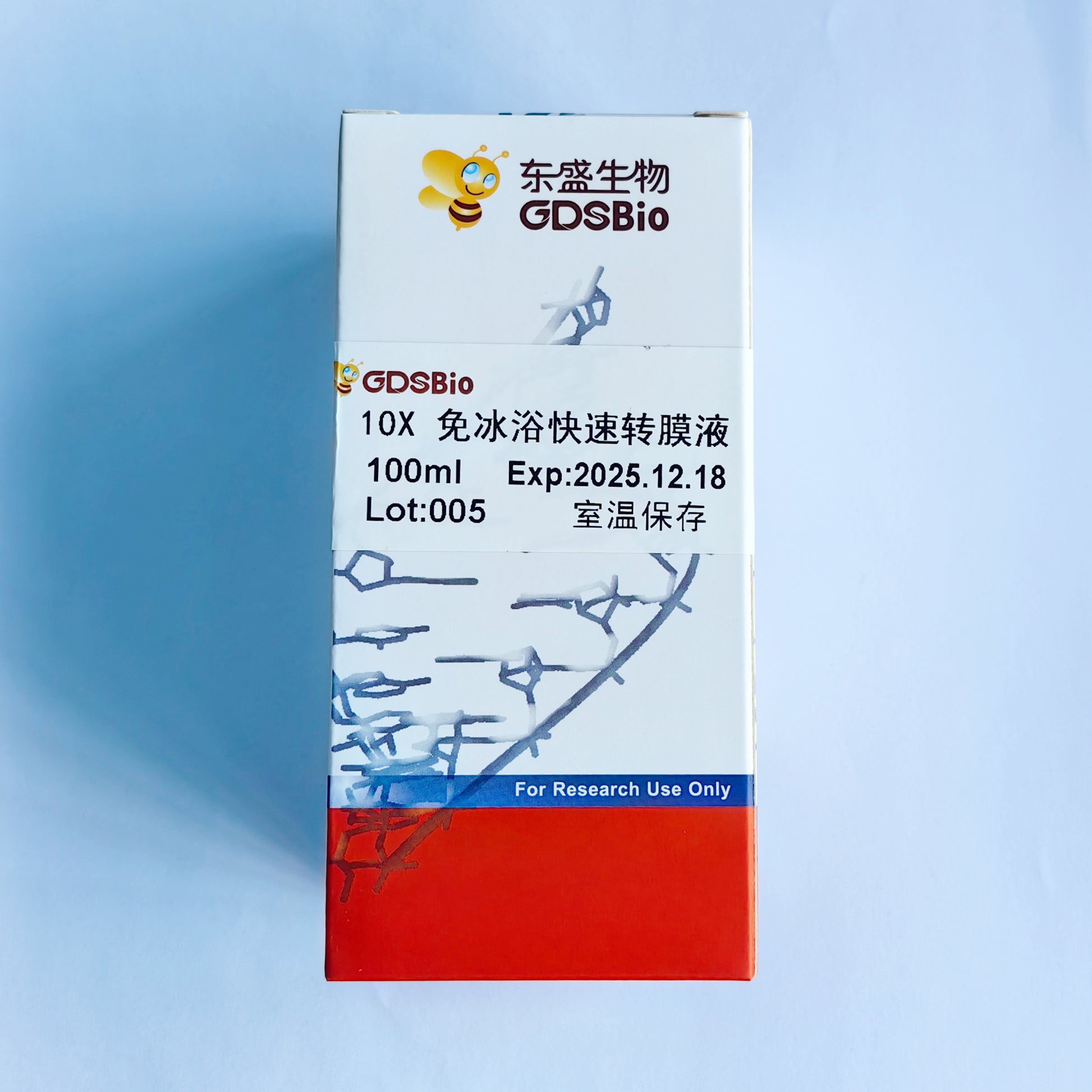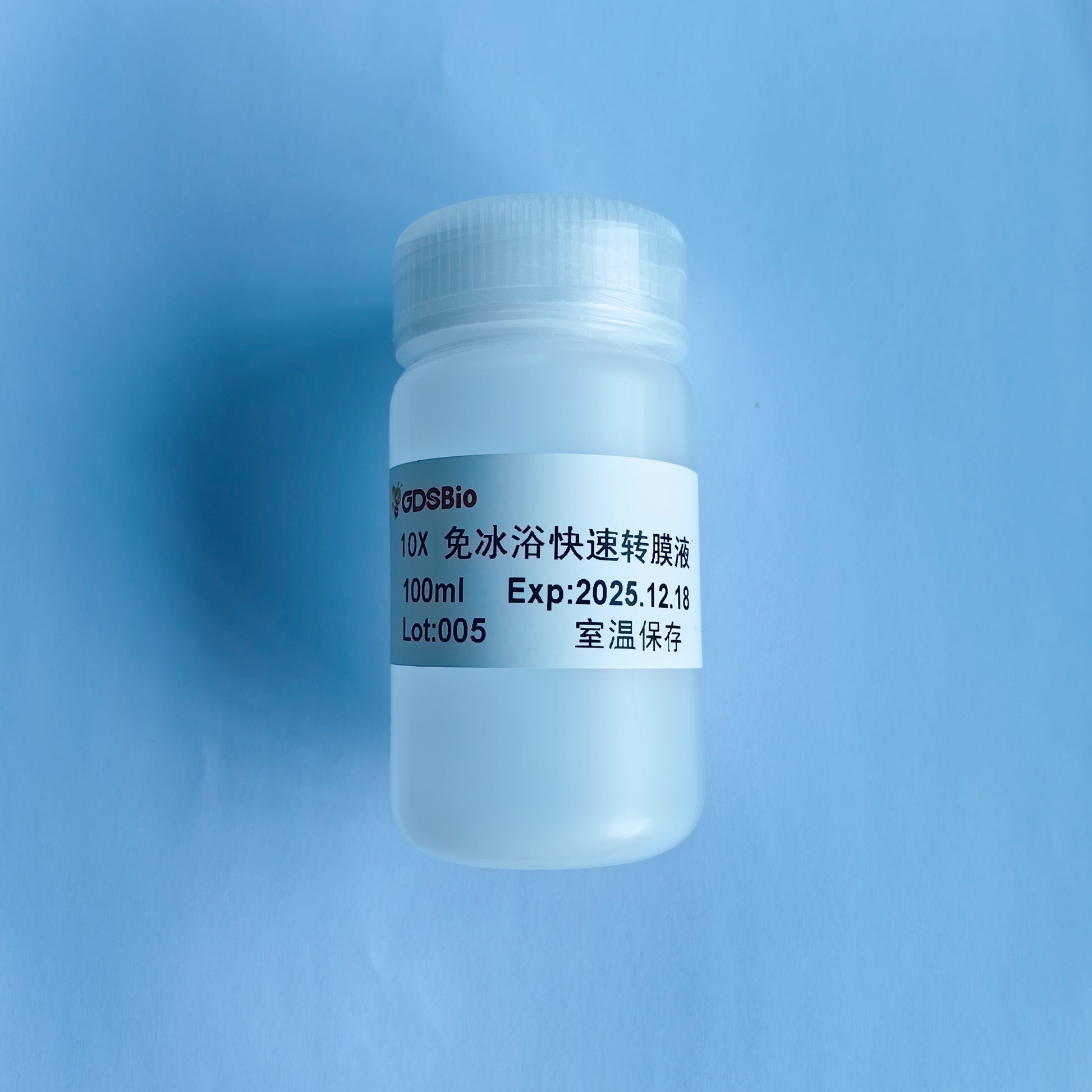 10X Ice-free Fast Transfer Buffer can be used for wet transfer methods, is safe and non-toxic, and is easy to prepare. It allows for rapid transfer, which can be completed within 15-35 minutes, generates minimal heat, and does not require an ice bath. Simply dilute with water and anhydrous ethanol to 1X for use.