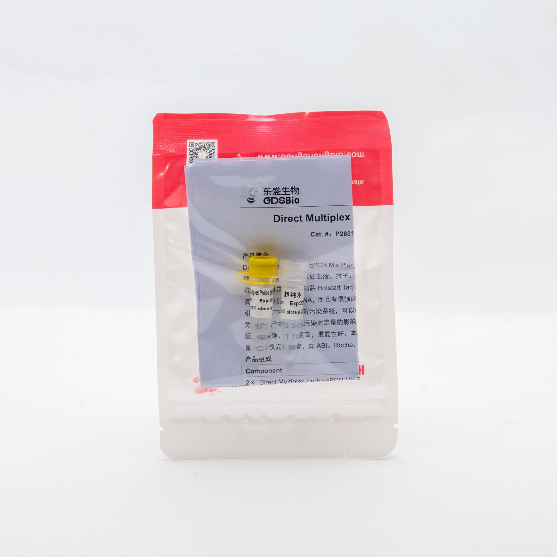 Direct Multiplex Probe qPCR Mix Plus U is a 2X concentrated premix for unpurified sample real-time quantitative PCR with probe method. It requires only the addition of primer, probe and sample, such as blood, swab and tissue homogenate, and the qPCR can be performed simply and directly. This product contains antibody technology modified Hotstart Taq DNA polymerase. Combined with GDSBio's special real-time PCR Buffer, it not only efficiently lyses cells to release DNA, but also has a strong tolerance to many inhibitors, allowing multi-probe qPCR reaction. This reagent introduced dUTP/UDG anti-contamination system, which can remove PCR products containing dUTP before PCR reaction, effectively avoid the influence of cross contamination of amplification products on quantification. This product is convenient for preparation of IVD molecular diagnostic kit. The target gene quantification is accurate, reliable and reproducible. This product can be used with TaqMan and other fluorescent probes, and is perfectly compatible with common quantitative PCR instruments, such as ABI, Roche, Bio-rad, etc.