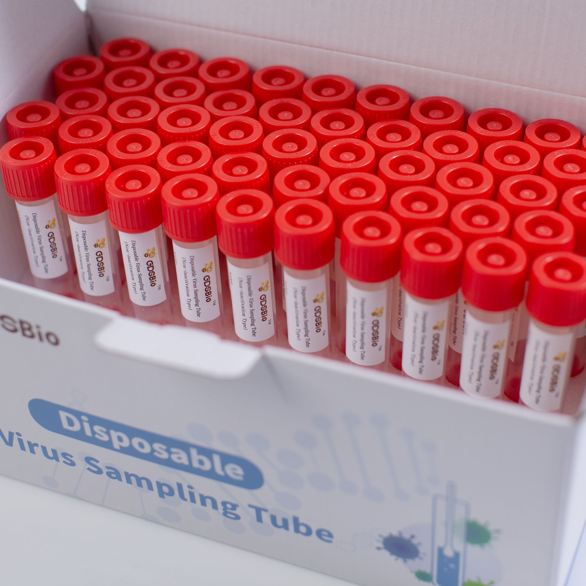 Disposable Virus Sampling Tube (Non-inactivation Type) is a sampling tube for collecting virus specimens, such as pharyngeal swab, nasal swab which may contains flu virus, SARS-CoV-2, etc. The preservation solution uses the classical Hanks balanced salt solution formula, adding bovine serum albumin (BSA) and antibiotics. It has a good preservation effect, prevents bacterial and fungal contamination, and can maintain the activity of the virus for nucleic acid detection, virus isolation and other purposes.