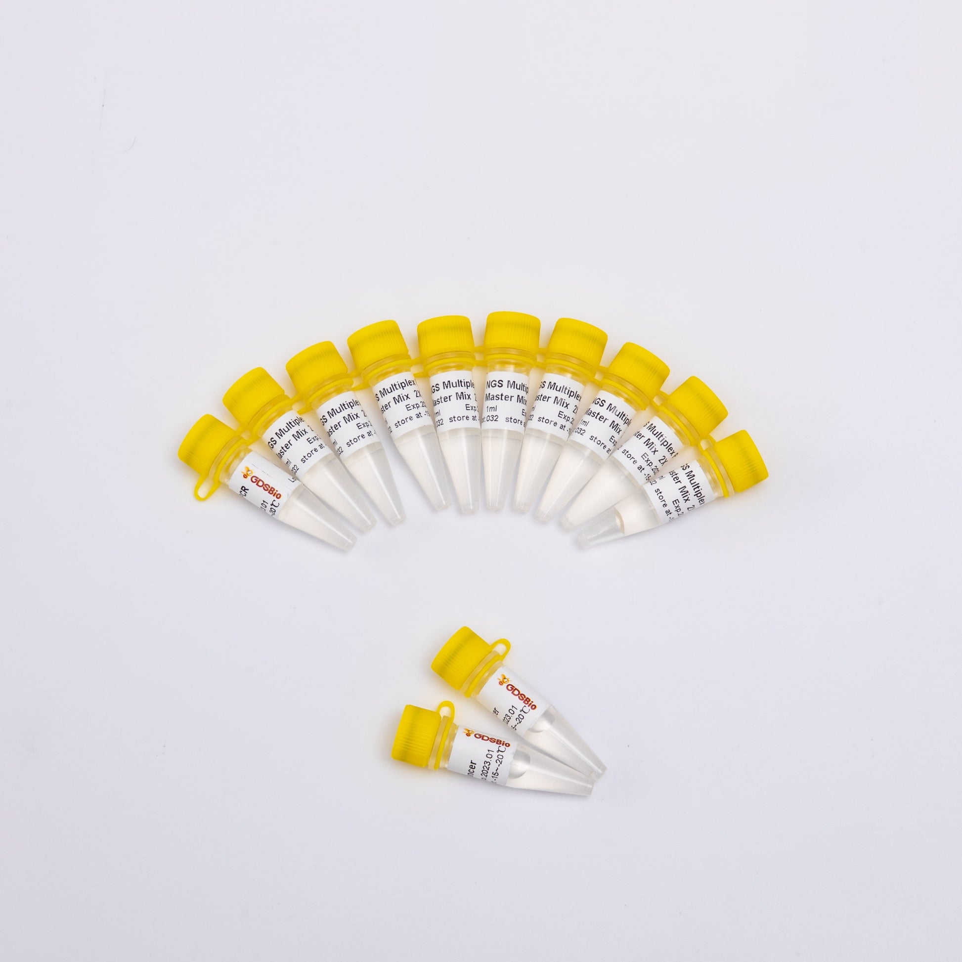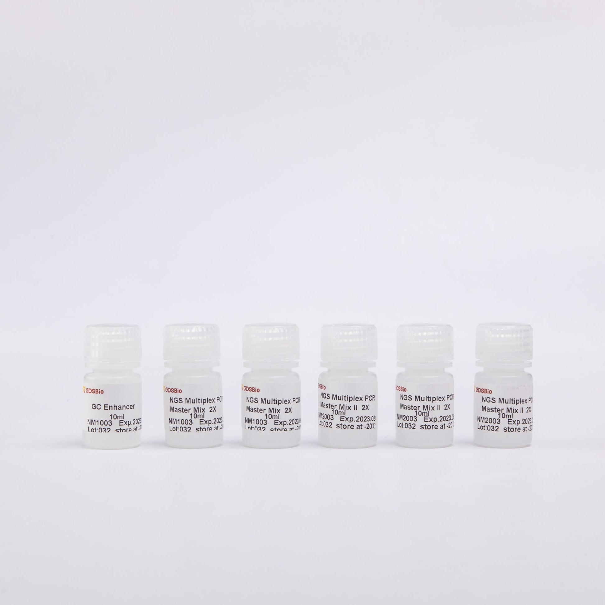 The NGS Multiplex PCR Master Mix contains all of the components for NGS multiplex PCR (except for primers and templates) in a single tube, including chemically modified Hotstart DNA Polymerase. With the low error rates and high specificity, the PCR products can be used for NGS sequencing. The mix also includes the GC Enhancer for difficult-to-amplify templates, especially for templates with high GC content.