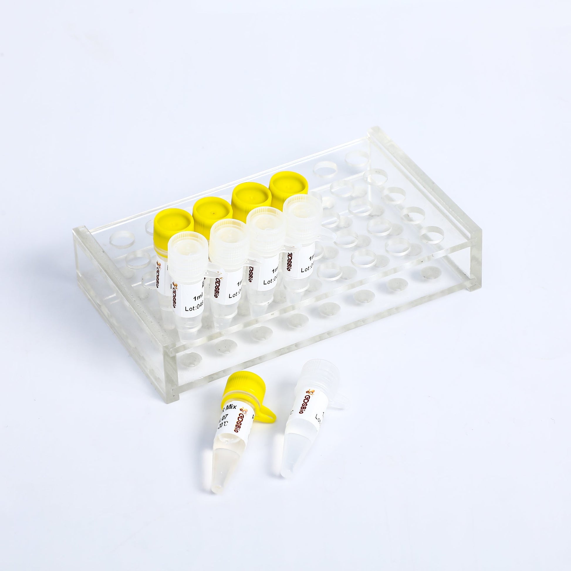 The Hotstart Taq DNA Polymerase in the mix is modified by antibody. When the temperature below 45°C, the activity of the modified polymerase will be strongly suppressed, only when the temperature reached 72°C, it can be activated. This technology helps to reduce non-specific amplification and primer dimer effectively.