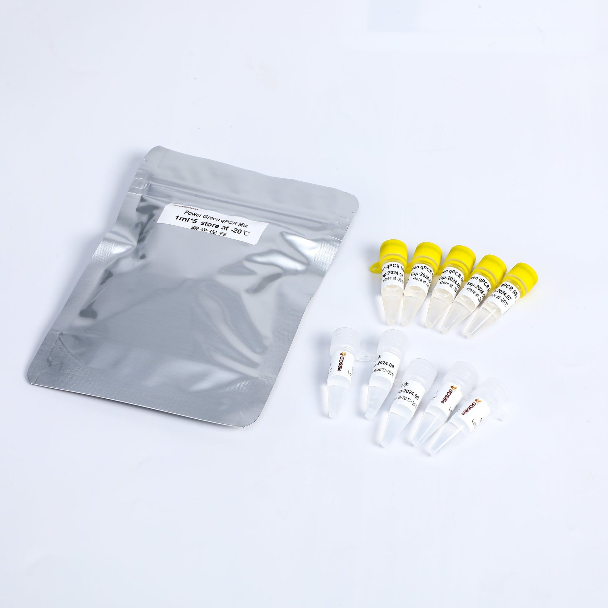 Super SYBR Green qPCR Mix is a 2X concentrated real-time PCR master mix that requires only the addition of template and primers to perform the reaction. The use of an innovative hotstart mechanism can reduce the interference of primer-dimers and other secondary products on the reaction, which can significantly improve the specificity and amplification efficiency of quantitative PCR, and obtain a wider quantitative amplification region. The new enhancer minimizes fluctuations in PCR efficiency for various target fragments, and repeated freeze-thaw cycles have minimal impact on amplification performance. This product comes with a special ROX Reference Dye, which is suitable for all qPCR instruments, eliminating the need to adjust the concentration of ROX on different instruments.